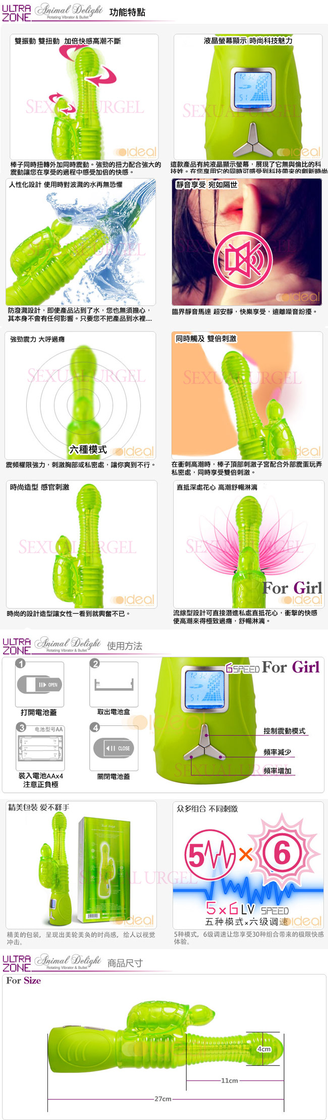 .主商品:美國Ultrazone-Turtle Delight 慾望神龜 5x6變頻液晶旋轉按摩棒 x1