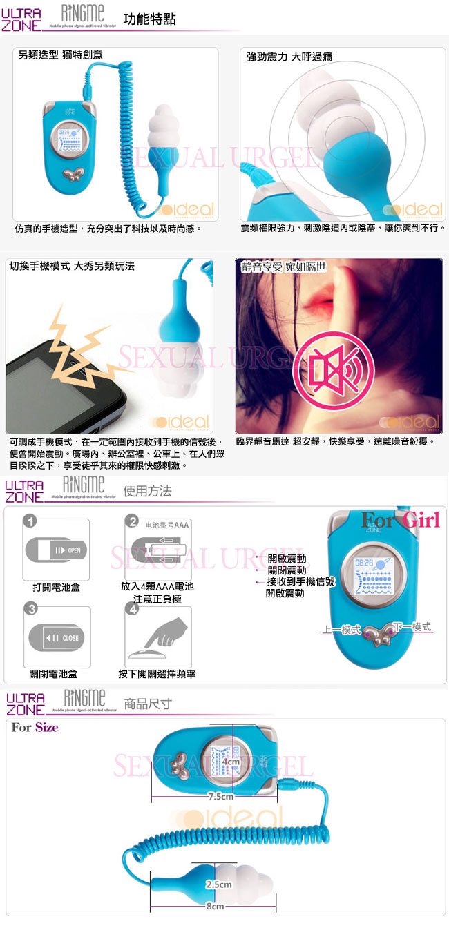 .主商品:美國Ultrazone-Ring Me 情慾熱線 5段變頻跳蛋-藍*1