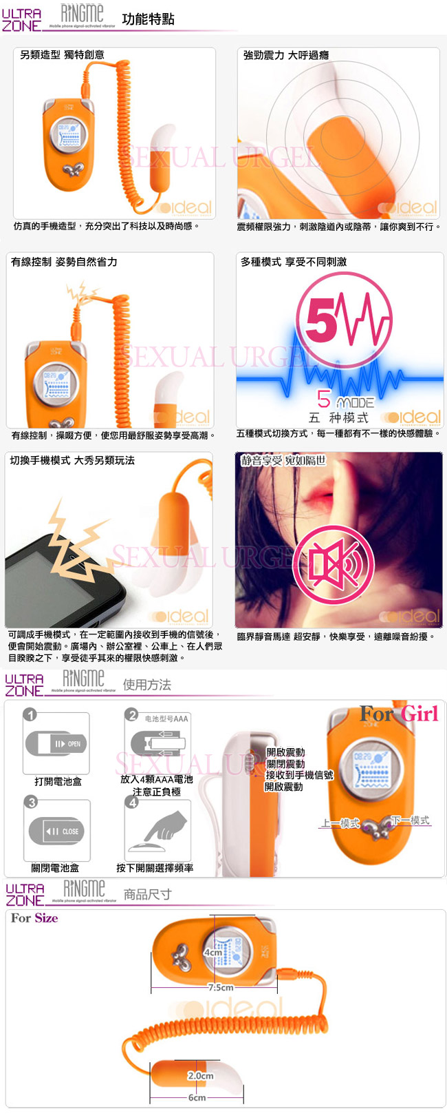 .主商品:美國Ultrazone-Ring Me 情慾熱線 5段變頻跳蛋-橘*1