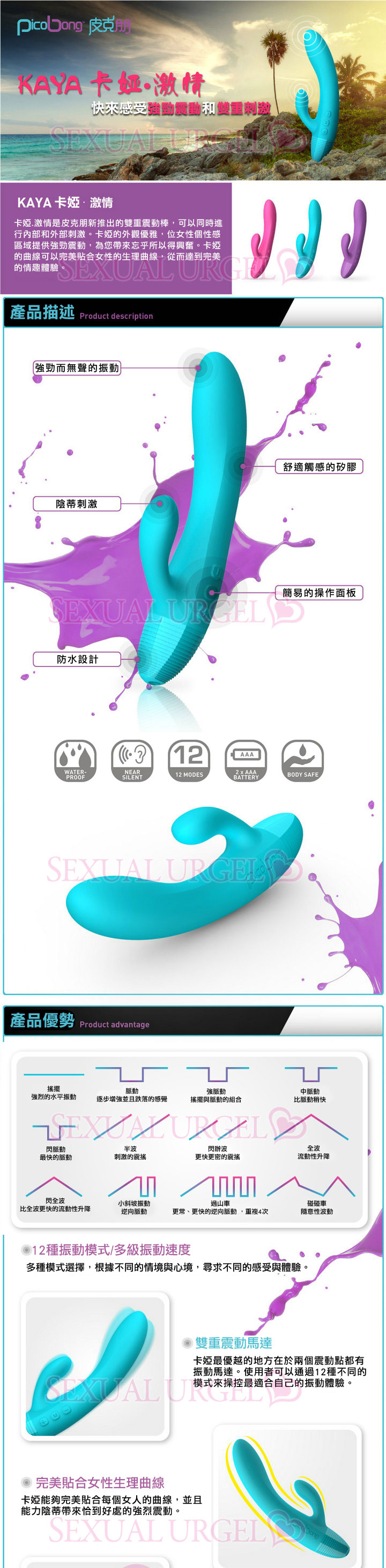 .主商品:瑞典PicoBong-卡婭 KAYA 女性激情雙重震動棒-紫*1
