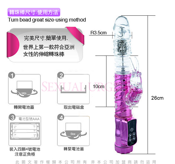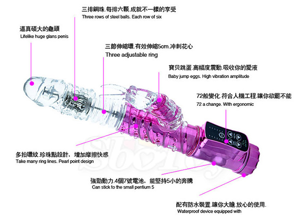 三排鋼珠,每排六顆,成就不一樣的享受,三節伸縮環,有效伸縮5cm衝刺花心