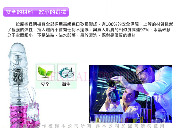 透明可愛的小傢伙,惹人喜歡軟軟長長的觸角,稍動你的陰唇,觸動你的每一根神經,讓愛液橫流,愛不釋手,晶瑩剔透的材質,源於我們對產品細節
