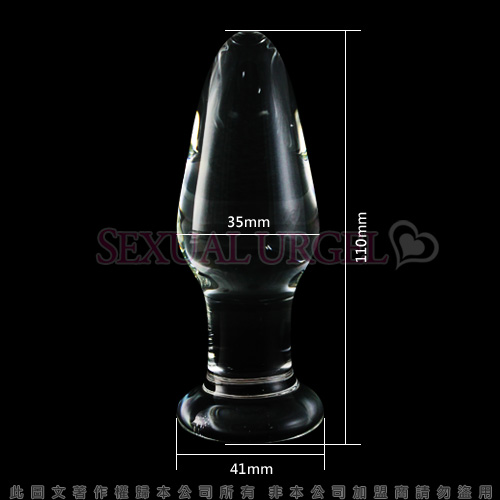 中等錐型設計,滿足後庭內的衝脹感,變幻無窮,流線圓潤,不傷肌膚。整體長度為11cm\最大直徑為3.5M\晶體為無色透明體。