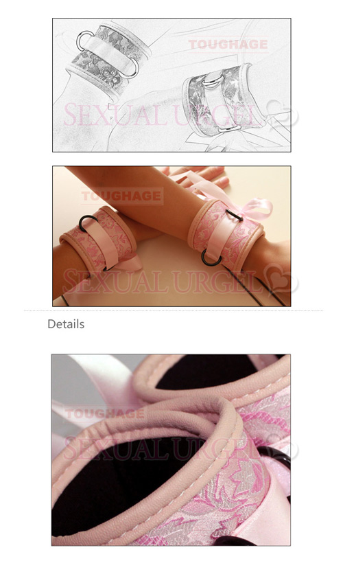 手腕束帶由護腕和束縛帶組成。護腕內填柔性材料,徹底保護手腕;束縛帶是一條光潔的絲帶,您可以單手、雙手綁縛,亦可綁縛於床頭、門窗等,總之任您發揮!Toughage用最優質的手工綢緞縫製,內襯仿皮絨,集中體現了舒適、牢固和美麗的產品要素。手腕帶寬達3英吋(約7.8厘米),適合全部手腕。