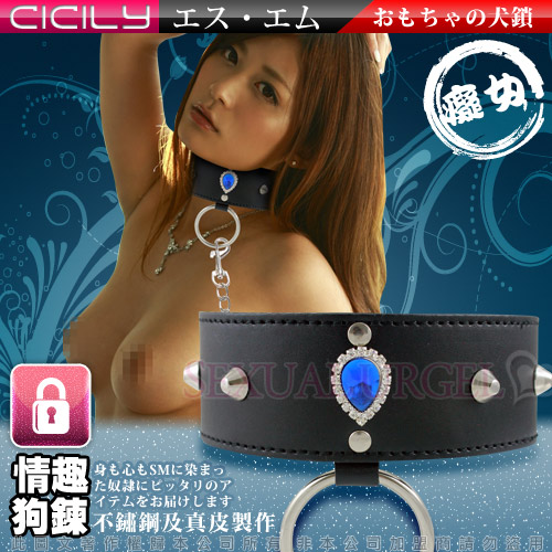 .商品名稱:虐戀精品CICILY-寶石癡女-皮革鉚釘頸銬(含鏈鎖)