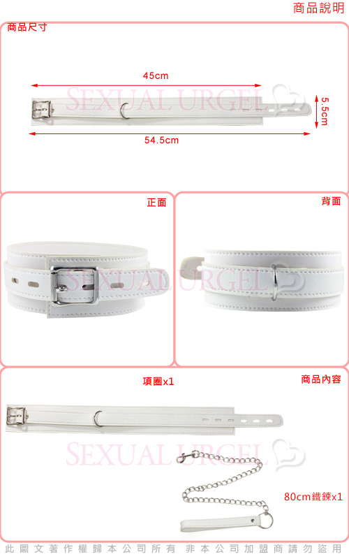 .商品名稱:虐戀精品CICILY-白色之戀-皮革項圈(含鏈子)