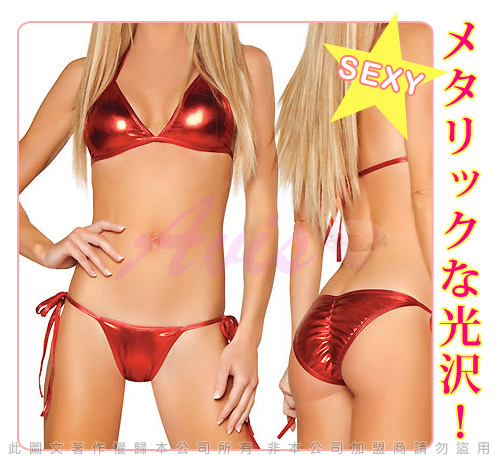.主商品:虐戀精品CICILY-豪乳爆爆 塗膠仿皮 兩件式比基尼-紅*1