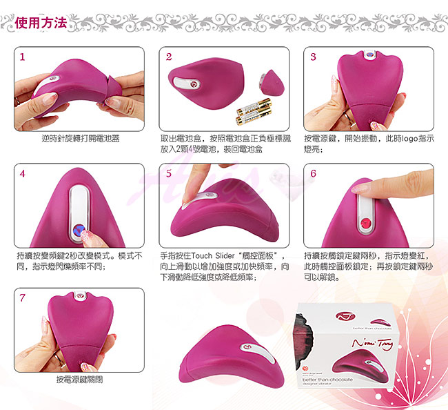 為您的親密私處帶來外部刺激從而激發您的情趣。首創的觸摸式滑動條輕鬆操控震動強度,指隨心動,點擊,