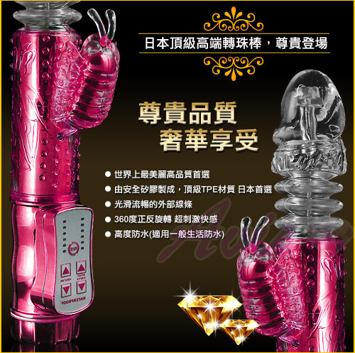 最新強力電動伸縮按摩棒,可同時震動陰道、陰核,震動力強勁!耐用、耐操,同時可震動,遠遠超越了男性陽具所能發揮的體能極限,強烈的戳幹力,幾乎讓人無法一手掌握,再怎麼強烈的燎原慾火,也會被它所撲滅夷平。中間的環紋部分不停地伸縮、抽動,在您的私處進出、摩擦;小蝴蝶的拍打、添吸著您最敏感的陰蒂……