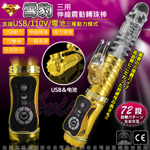 .主商品:雪豹突擊-電池110VUSB 三用頂級多功能滾珠按摩棒-金 *1