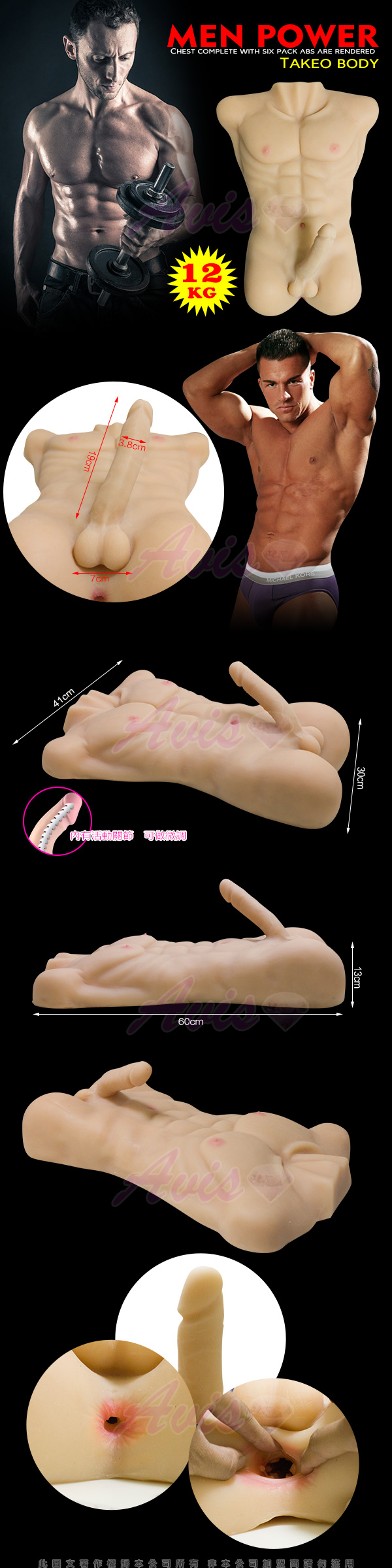 完全1:1打造美國猛男身體的上半身,就連胸肌跟6塊腹肌都完整呈現,巨根肉棒、蛋蛋、菊花洞都完完整整的真實呈現。