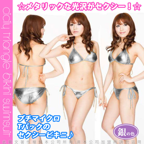 .主商品:虐戀精品CICILY-豪乳爆爆 塗膠仿皮 兩件式比基尼-銀*1