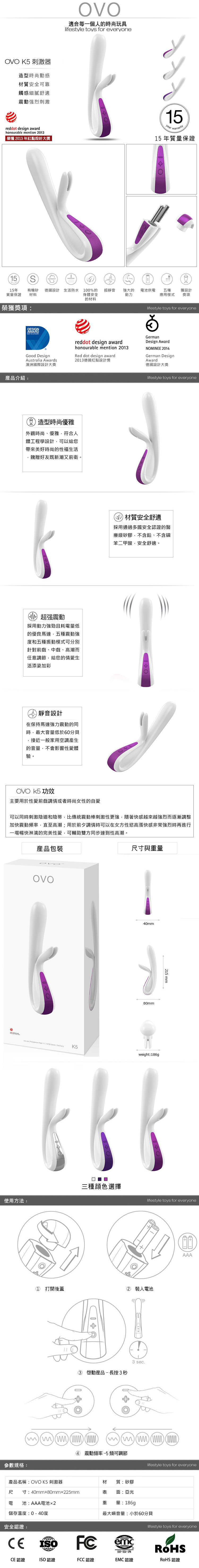.主商品:德國OVO-K5 小兔寶 5段變頻 多功能 雙叉 震動按摩棒-紫桃色X1