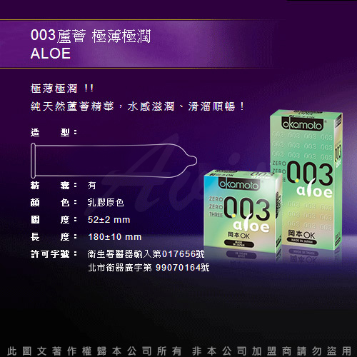 品名:岡本003-ALOE 超潤蘆薈極薄保險套