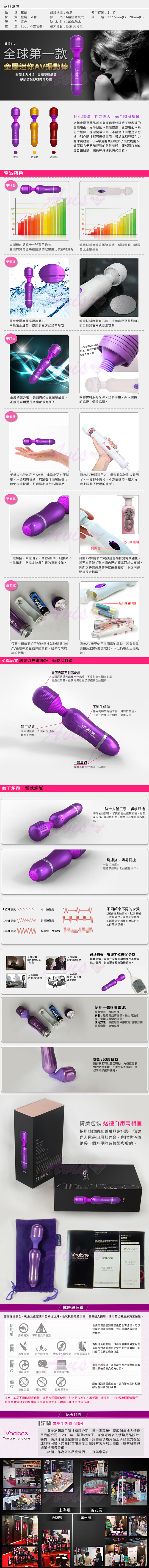.主商品:香港Nalone-ELYI 艾怡 迷你防水靜音6段變頻金屬AV震動棒 *1