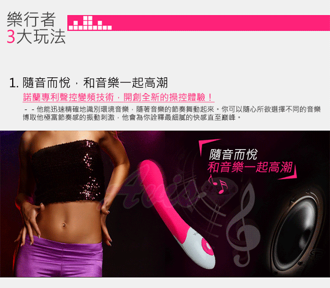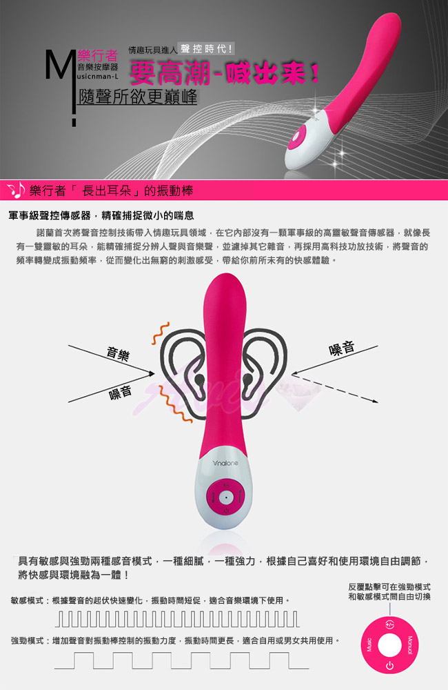 首次將聲音控制技術帶入情趣領域,內部設有軍事級聲控傳感器,就像一雙靈敏的耳朵,能精確捕捉人聲與音樂聲,將聲音轉變成震動頻率,帶給你前所未有的快感