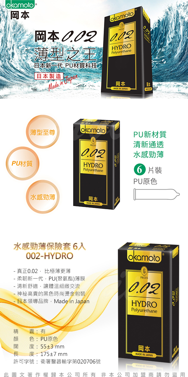 岡本002-HYDRO 水感勁薄保險套(6入裝)