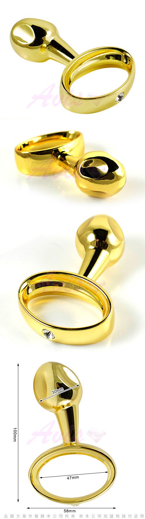 .商品名稱:CICILY 大頭小武士 金屬前列腺G點手握式肛塞(土豪金)*1