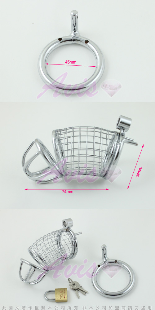 冰冷的金屬,是否降低愛人的欲望?一個金屬鳥籠加上卡環,將愛人牢牢鎖住,流暢的線條,厚實的金屬質感,可以防止手淫等行為,是非常時尚的sm貞操帶,可以全天候長時間穿戴。