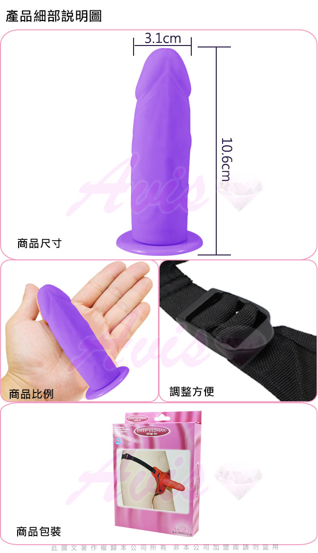 .商品名稱:APHRODISIA 活潑小弟弟 穿戴逼真型按摩棒-紫 *1