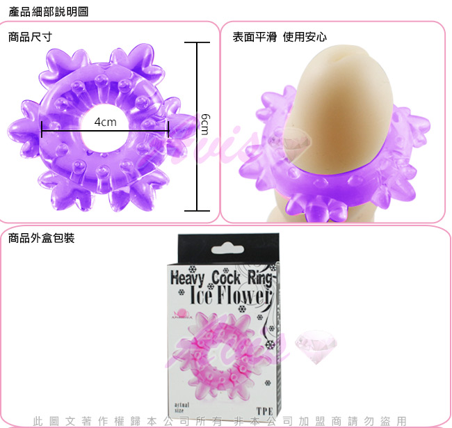 .主商品:APHRODISIA 馴龍高手 軟膠強力猛男激情環-紫(雪花) *1