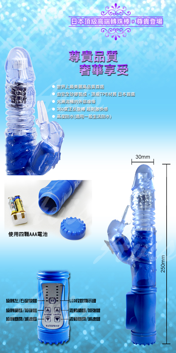 .商品名稱:海獺戀人 288段變頻式伸縮正反轉滾珠按摩棒-藍*1