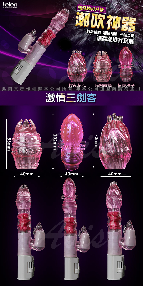 刺激倍翻、加長加粗、三劍合璧、讓高潮進行到底