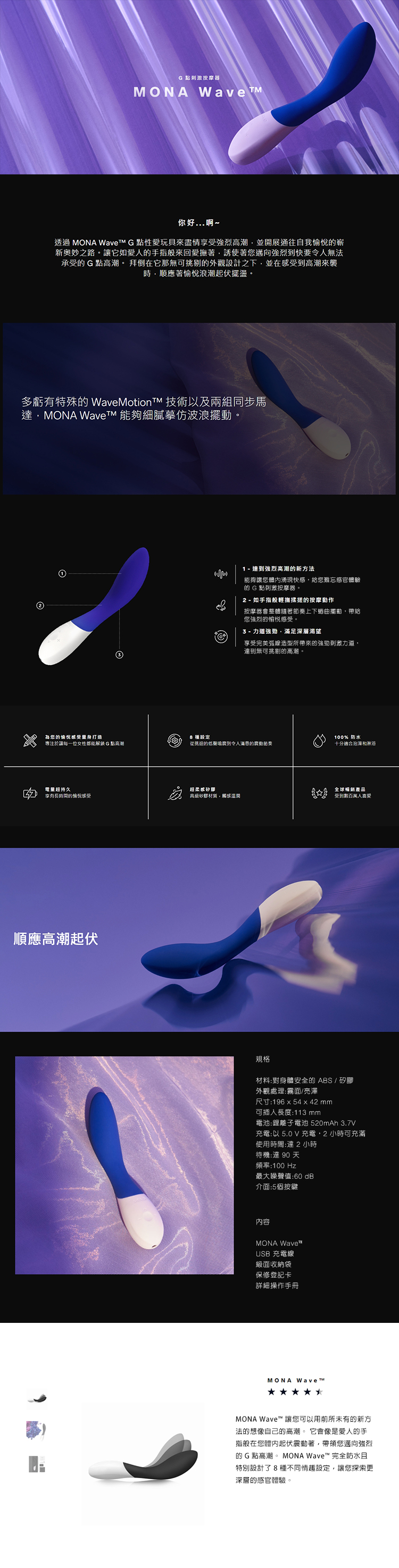 商品名稱:瑞典LELO MONA WAVE 茉娜 浪潮 首創仿手指挑逗技術 曲線G點按摩棒