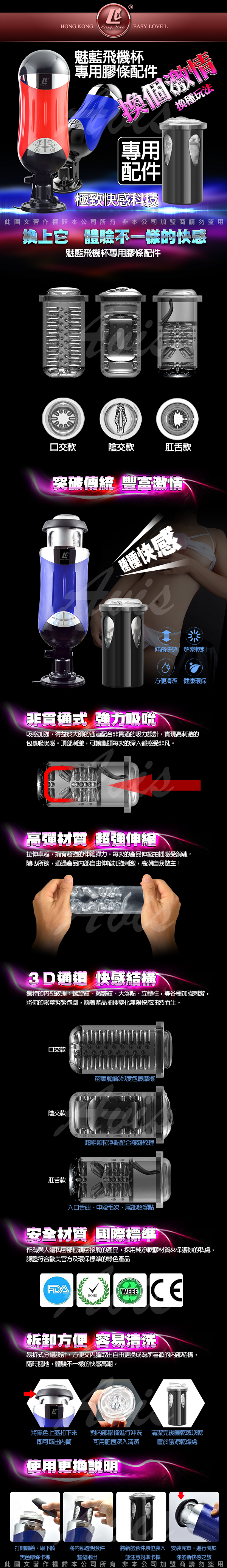 活塞魅藍 50種模式智能快速抽插男用 吸盤自慰杯 專用膠條配件 陰交