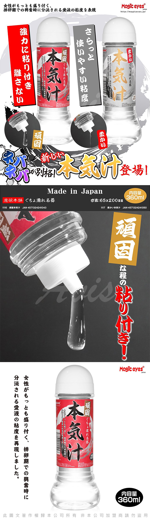 .主商品:日本Magic eyes 本氣汁潤滑液 360ml 超強黏度 紅   X1