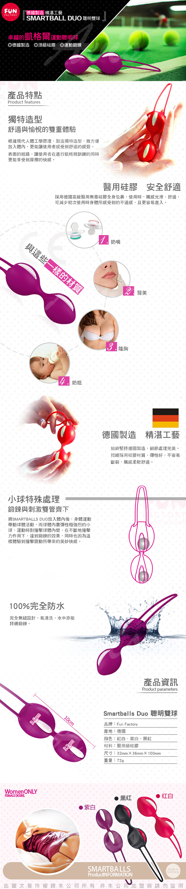 .主商品:德國FUN FACTORY DUO 聰明球球雙球 女性情趣運動 白/紫