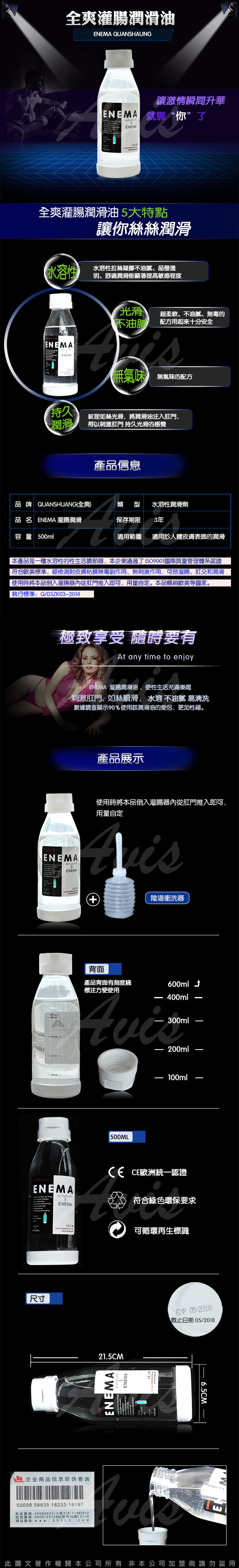 .主商品:ENEMA 男同志專用 後庭肛交情趣潤滑液 贈後庭/陰道清洗器X1