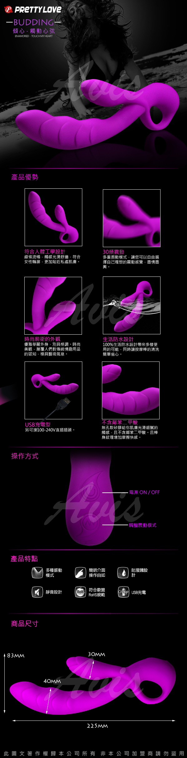 .主商品:BUDDING 情色猛男 全硅膠 激情30段變頻靜音防水充電按摩棒