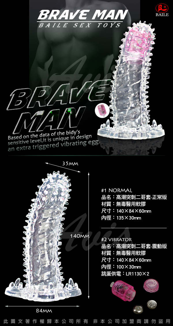 .主商品:BRAVE MAN 水晶增粗加長套 多刺型
