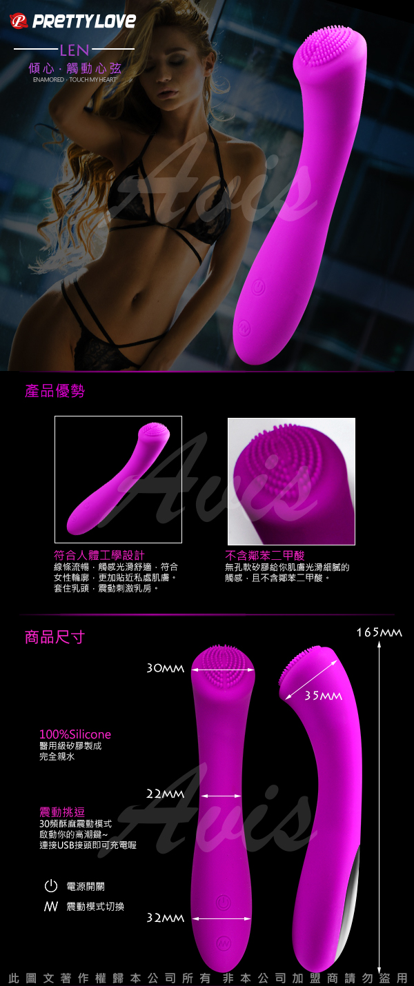 .商品名稱:Len 乳陰G點剌激 全方位多功能按摩棒 USB充電