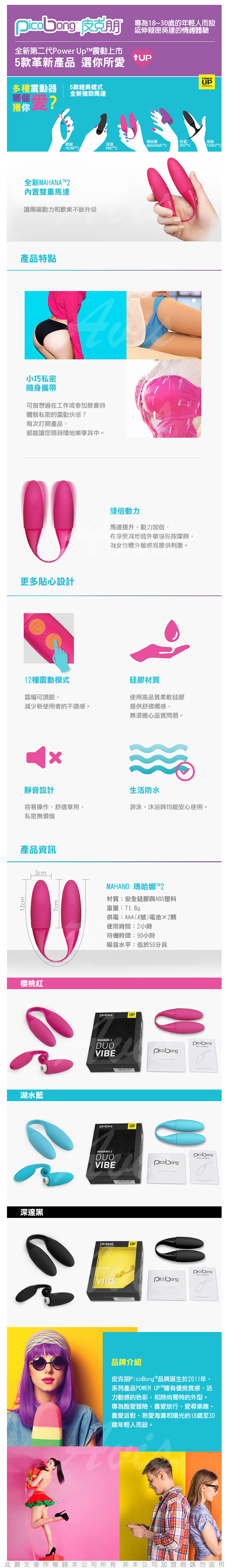 .商品名稱:瑞典PicoBong MAHANA 2瑪哈娜雙重奏二代 陰蒂G點雙刺激共震按摩器