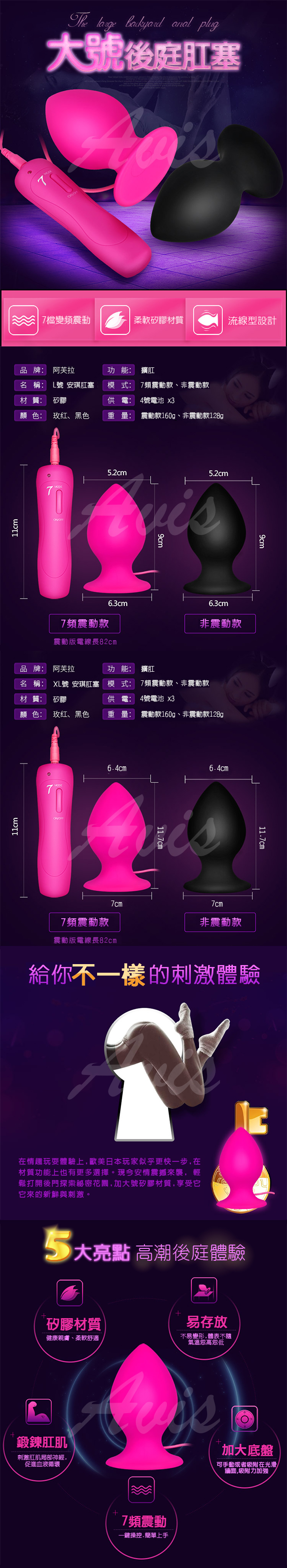 .商品名稱:APHRODISIA 肛帝 七段變頻 重量級 矽膠肛塞 XL號 黑 震動款