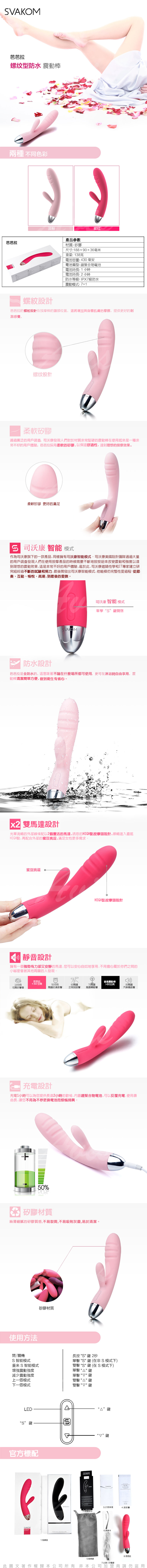 .商品內容:美國SVAKOM Barbara 芭芭拉 7+1段變頻 螺紋型 防水G點按摩棒