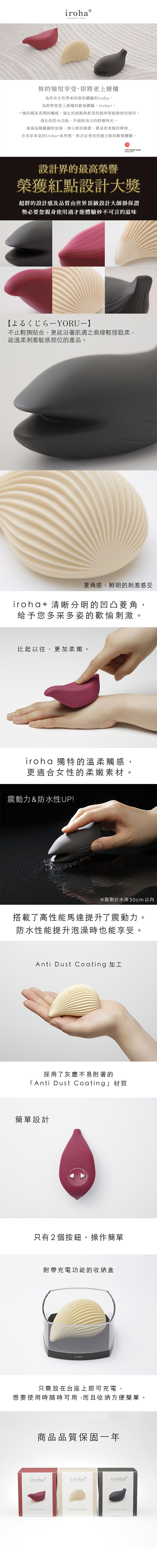 以可愛和風造型及柔軟手感作賣點的Iroha系列推出全新作品。採用軟觸感材料造,表面光滑且具細膩觸感。與肌膚配合度高,不會有黏膩或不自然的感覺 - 就像你的另一層肌膚