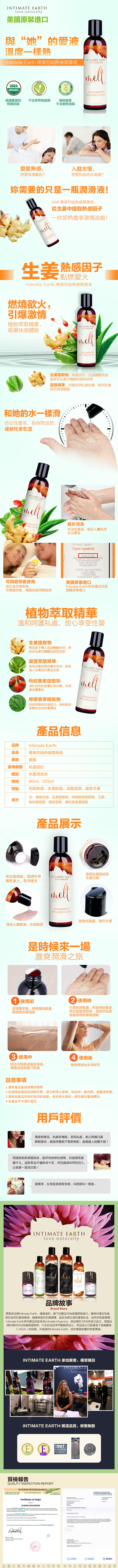 .商品內容:美國Intimate-Earth Melt 冰融熱感潤滑液-肉桂&生薑 60ml