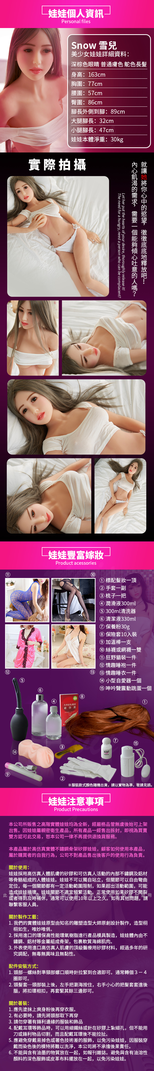 .商品內容:Snow 雪兒 不銹鋼變形 真人實體娃娃 乳交 肛交 陰交 真人倒模 情趣骨骼娃娃  163cm / 30kg 非充氣娃娃