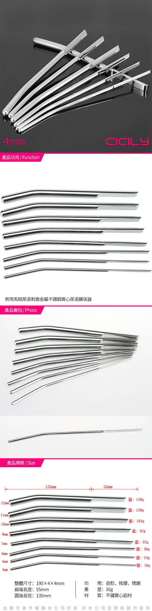 .商品內容:虐戀精品CICILY 金屬不銹鋼 實心尿道擴張器 男用馬眼刺激 01 4mm