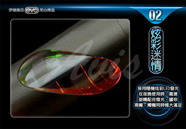採用隨機炫彩LED發光,在夜晚使用時高速旋轉配合燈光,讓你視覺觸覺同時極大滿足