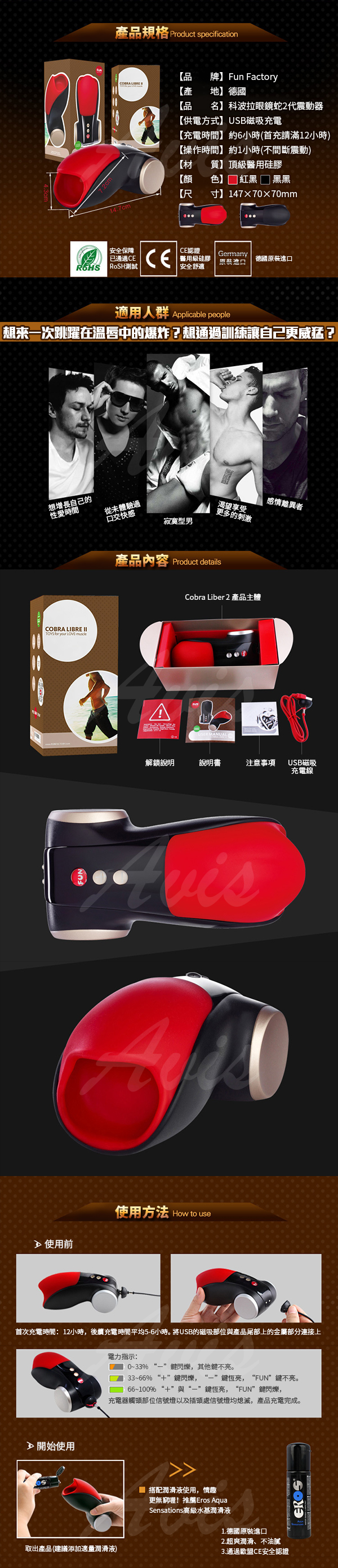 .主商品:德國FUN FACTORY 眼鏡蛇柯波拉 2代 男性自愛電動按摩器 紅黑 磁吸式充電