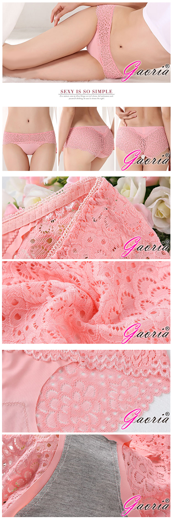 【Gaoria】狂潮熱戀 性感蕾絲拼接無痕 性感內褲三角褲 蝦紅
