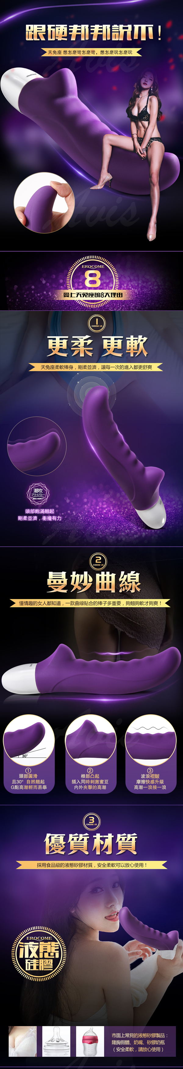 .商品名稱:EROCOME伊珞 LEPUS 天兔座 柔軟防水靜音女用自慰器 震動按摩棒 紫色