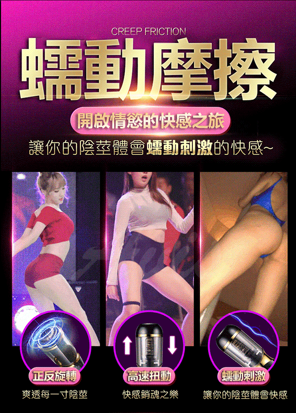 蠕動摩擦:機器正反旋轉、高速上下抽動,讓陰莖體會刺激快感。