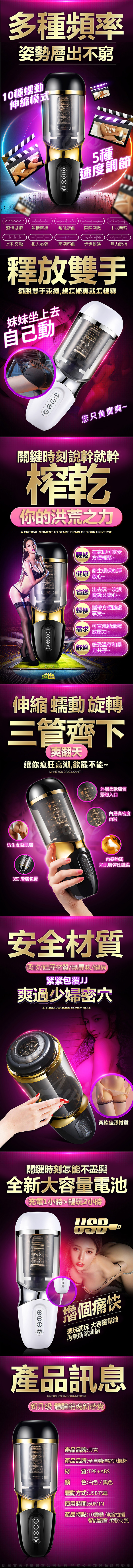 .商品名稱:貝克杯全自動伸縮旋轉抽插飛機杯 發音叫床電動自慰器 USB充電免持吸盤
