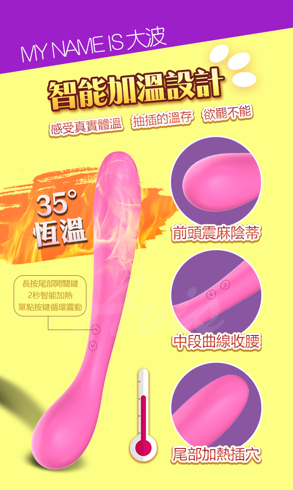 大波 8段變頻 智能加溫防水 雙頭雙震AV棒按摩棒 溫馨版 桃紅