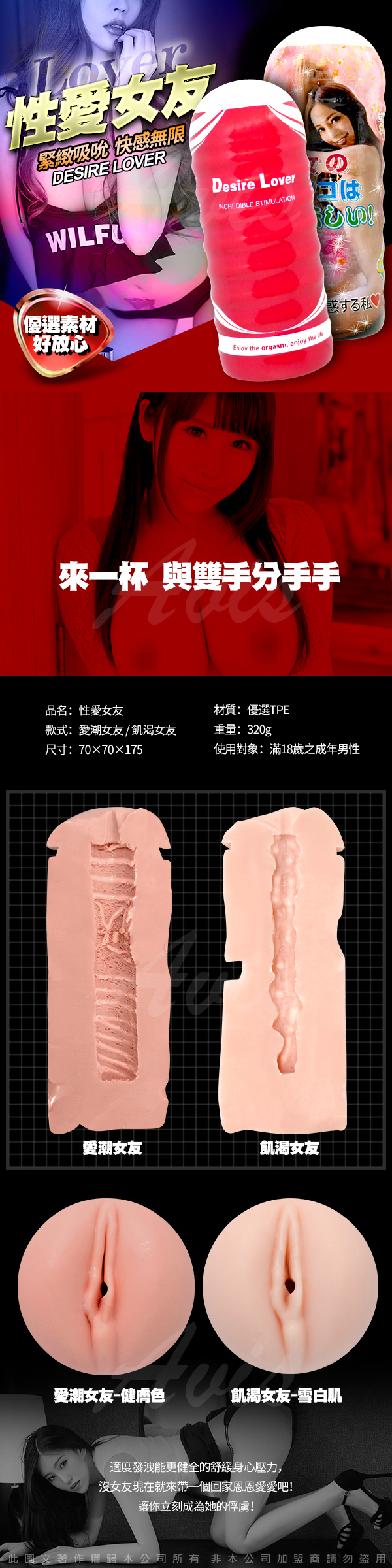 .商品名稱:性愛女友 誘惑搾取大滿足蜜穴杯 飢渴女友款 雪白肌